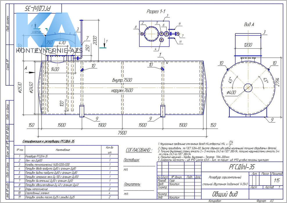 - Резервуары: только двустенные с азотом в межстенке