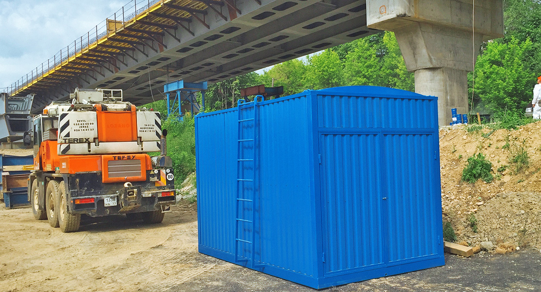 3) Мобильная автозаправочная станция в морском контейнере. Контейнером данного вида АЗС служит готовый морской контейнер. Морской контейнер имеет жесткую конструкцию и качественное покрытие. Выгодно использовать при транспортировке на дальние расстояния железнодорожным транспортом, а также если есть необходимость в многократных переездах с одной строительной площадки на другую.