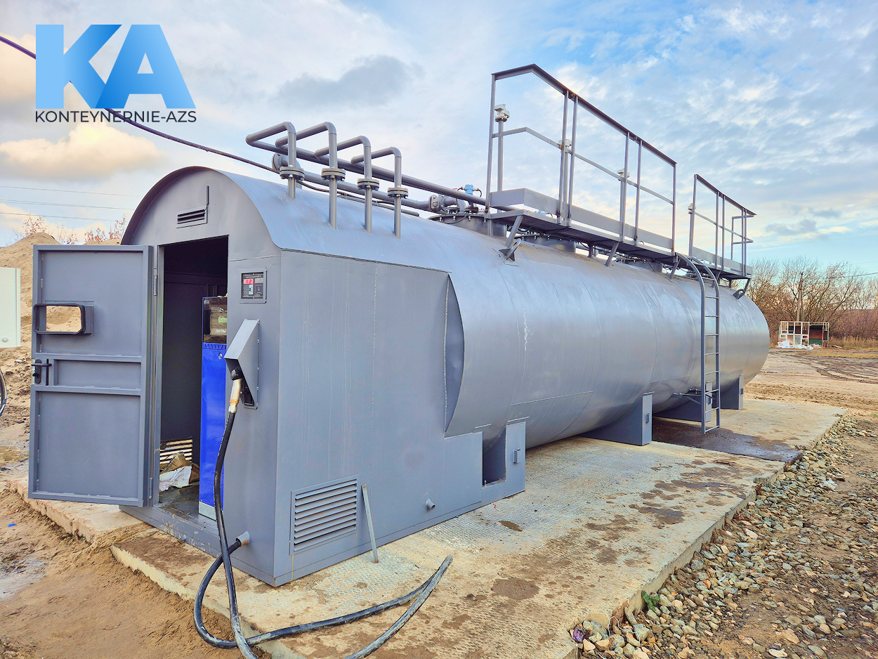 Готовая заводская система с резервуаром и ТРК. Объемы 5–60 м³, 1–4 вида топлива.